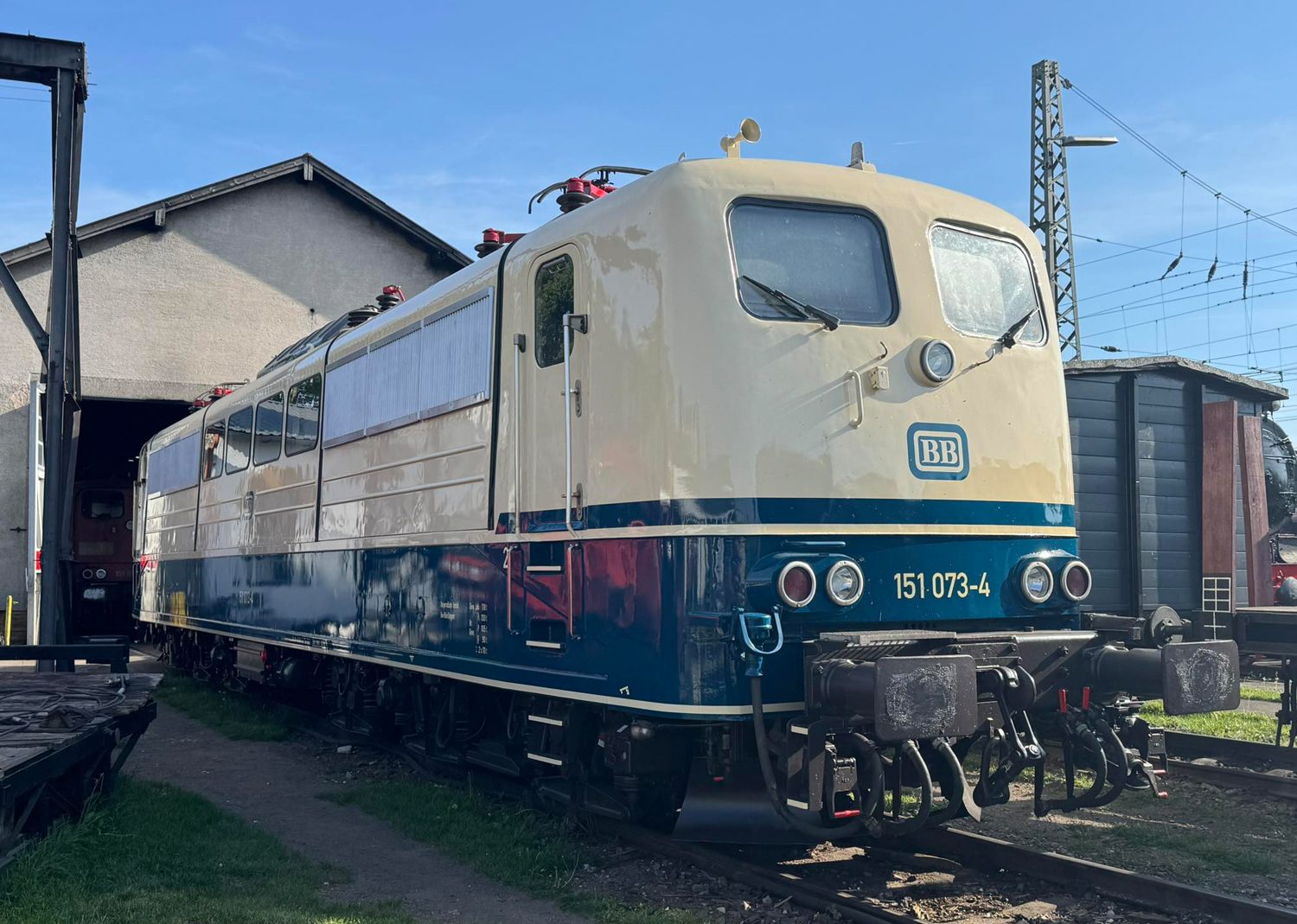 Locs van het type 151 hebben tientallen jaren duwdiensten verleend op de Geislinger Steige, die in 1850 – dus precies 175 jaar geleden – werd geopend voor het spoorvervoer, omhoog naar de Alb naar Amstetten. 151 073-4 was de eerste locomotief van dit type die bij haar indienststelling bij de Deutsche Bundesbahn onmiddellijk het toen nieuwe kleurenschema "Oceaanblauw-beige" droeg.