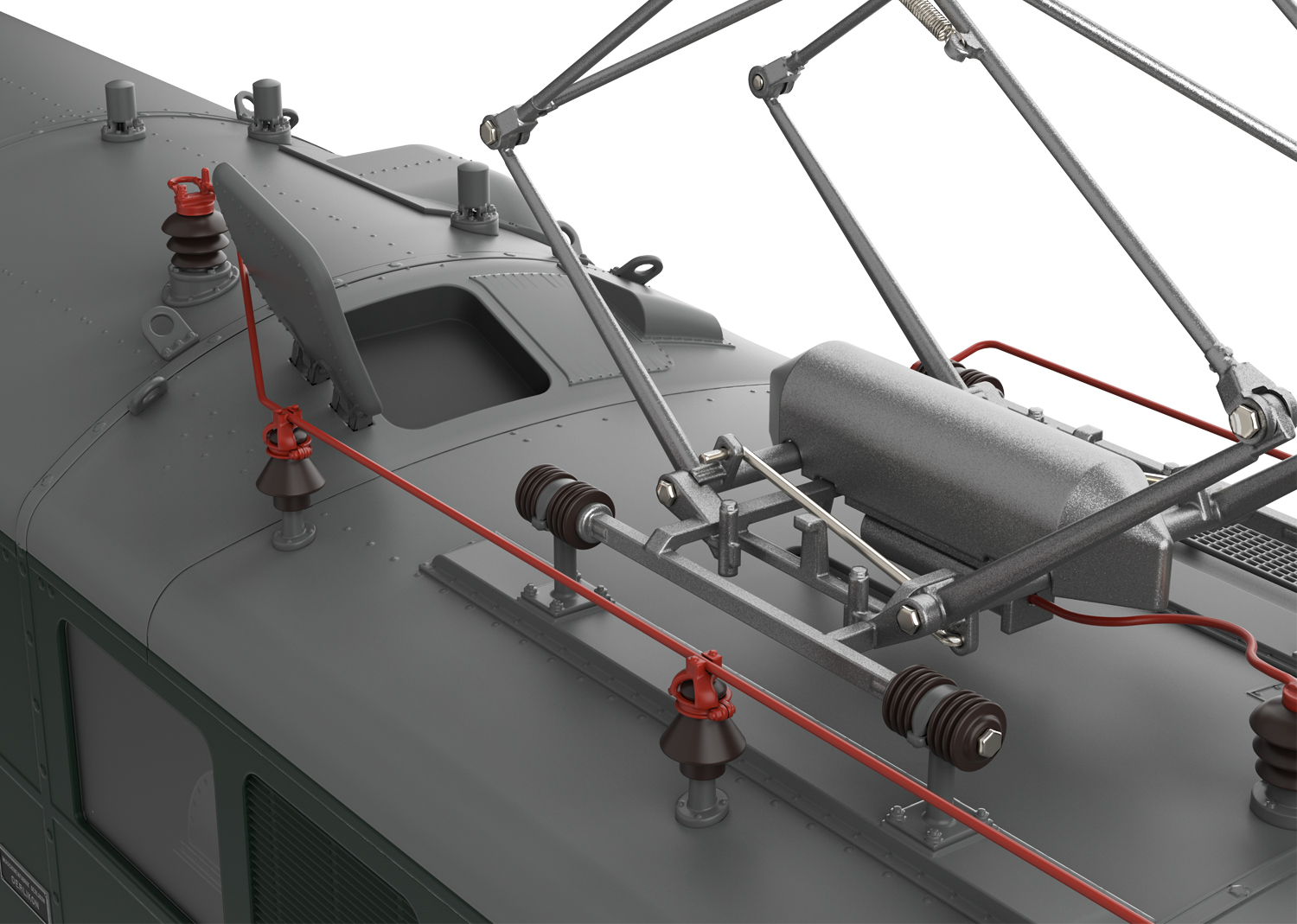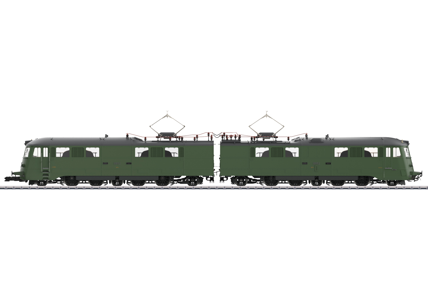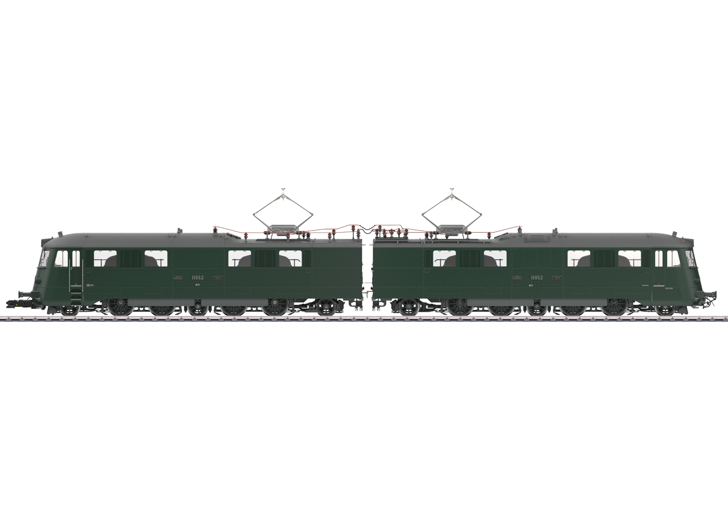 Voorbeeld: Elektrische locomotief type Ae 8/14 nr. 11852 'Landi-loc' van de Zwitserse Staatsspoorwegen (SBB). Kleur dennengroen. Periode IV. Zoals in dienst omstreeks 1970.