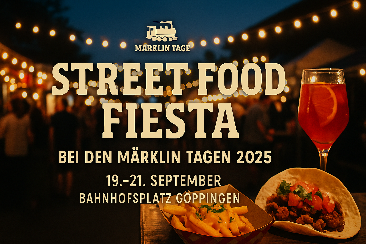 Niet alleen Modelspoorliefhebbers komen aan hun trekken: Op het stationplein in Göppingen zorgt het Street Food Fiesta op alle drie de dagen voor de perfecte catering van gasten en medewerkers. Verwacht een kleurrijke verscheidenheid aan internationale gerechten, waaronder sappige Smash Burgers, Schwaben Döner, Portugese Bifanas, authentieke Mexicaanse Tacos, Colombiaanse Arepas, Griekse Souvlaki en vele andere specialiteiten.
