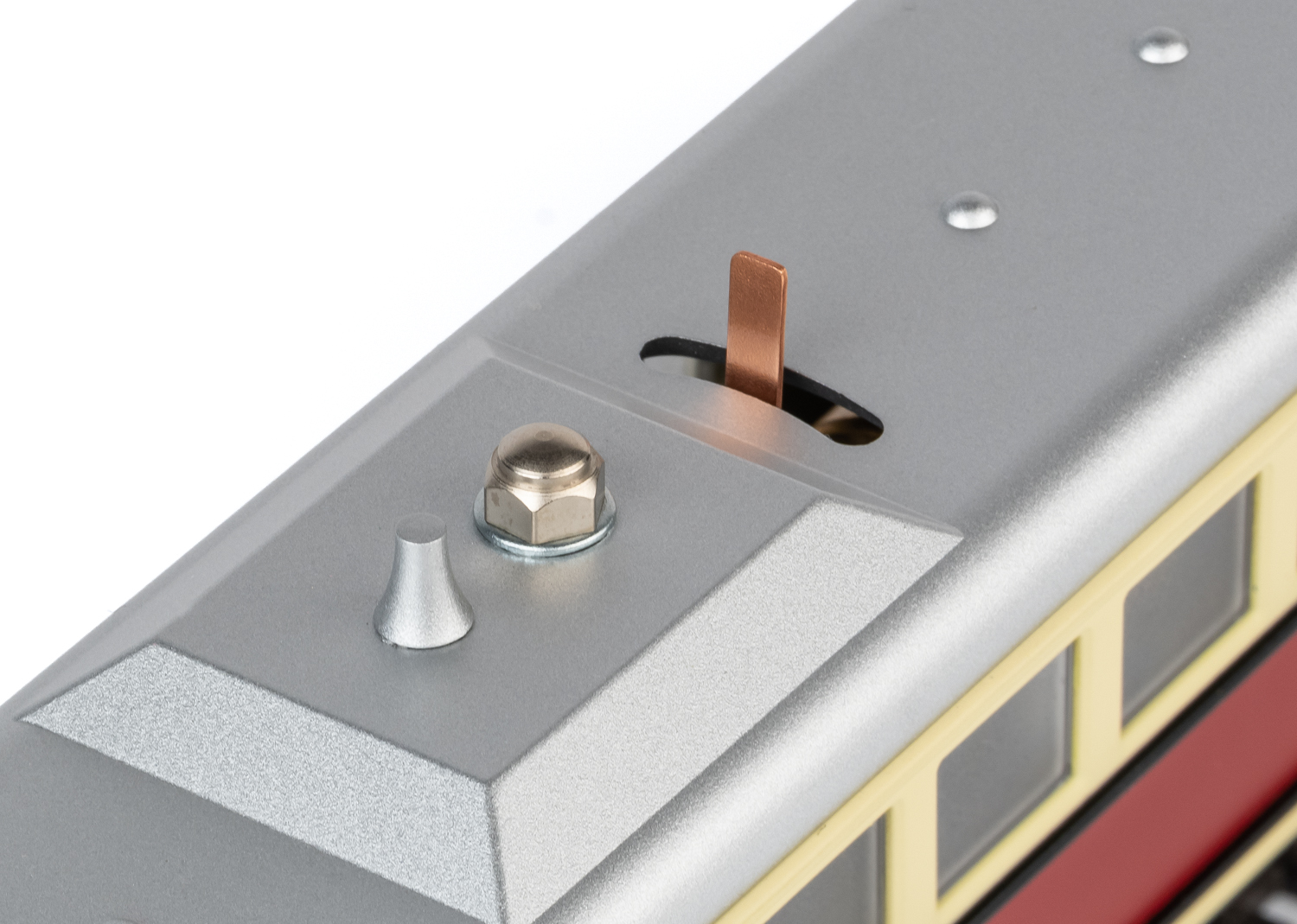 Model: Onderstel en opbouw van zinkdrukgietwerk. Eén draaistel aangedreven. Met digitale mfx decoder. Tweepunts frontsein aan één kant wit verlicht, aan de andere zijde rood. Verlichting brandt in analoog bedrijf en is digitaal aan/uit te schakelen.