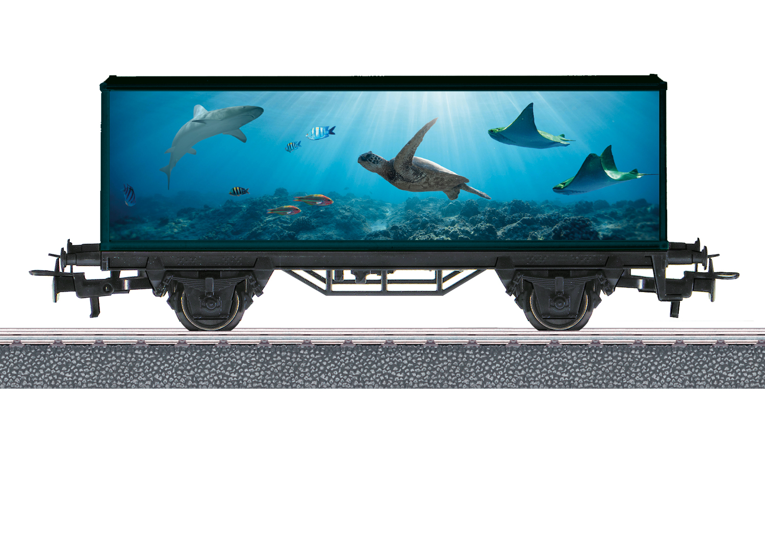 Voorbeeld: Twee-assige containerwagen in aantrekkelijke zee-uitvoering.