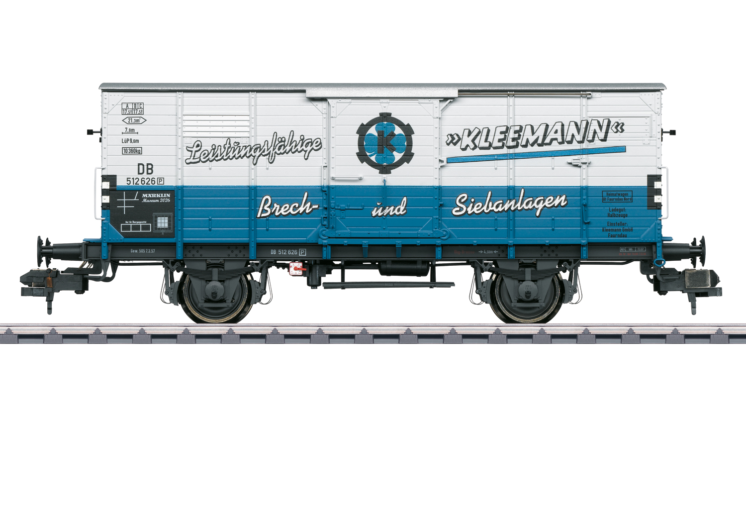Model: Wagen is uitgevoerd met opgebouwd remmershuis en zonder versterkte fronten. Nauwkeurig bedrukte tweekleurige opbouw met reclameopschriften op de zijkanten. Lengte over de buffers 30 cm. Met speciaal voor deze wagen ontworpen verpakking.